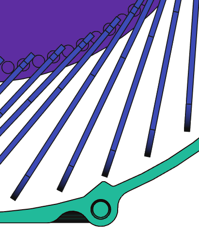 The construction of the module can be described as follows: A 3D printed 'shell' is sandwiched between two side panel PCBs. A 3D printed bearing is mounted on each of the side panels and the 'flap wheel' is mounted on these bearings. The flap wheel consists of 3D printed core sandwiched between two PCBs. All the flaps rest between these two PCBs.