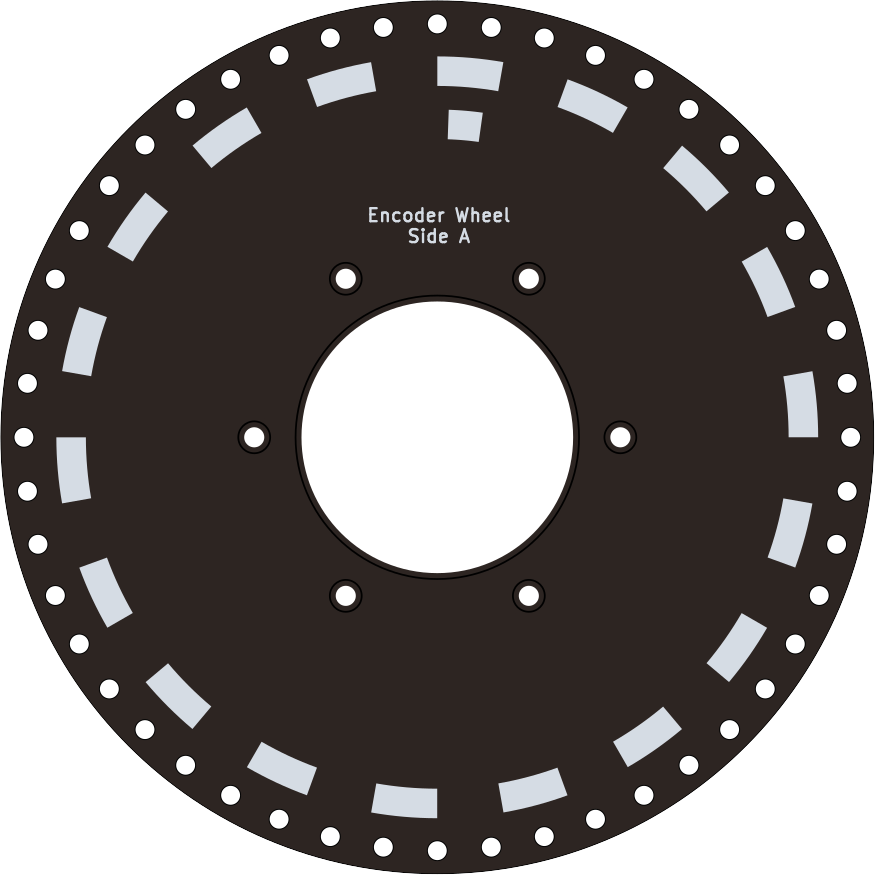 Each encoder wheel has an A & B side. On the A side, the encoder pattern is offset 4.5° relative to the flap holes. On the B side this offset is 3.75°. This allows you tho switch the side in case the flaps are rotating to far / not far enough.